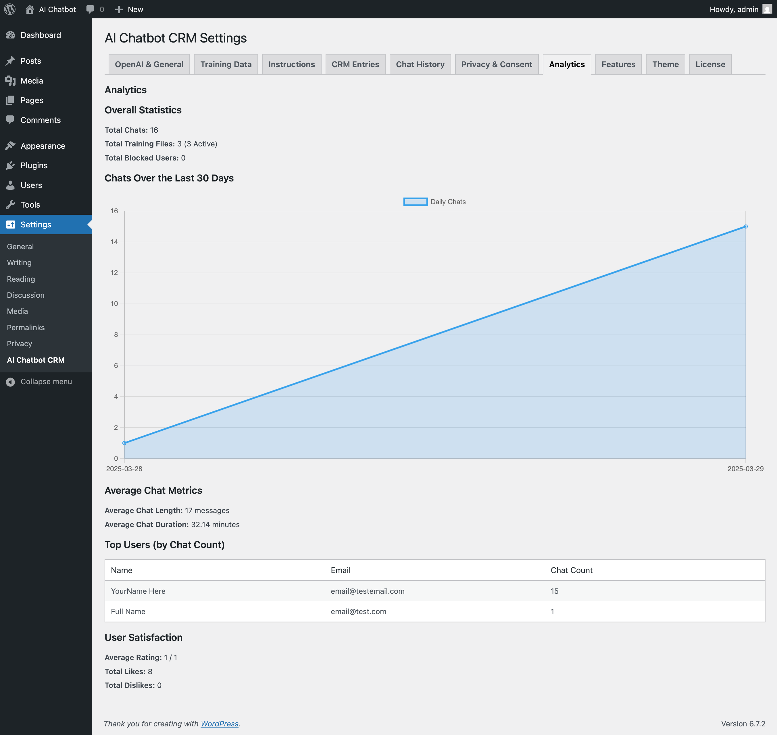 All plugin features: AI Chat, Built-in CRM, Voice TTS (including advanced vibe settings), Training Data, Vector Search, etc. |